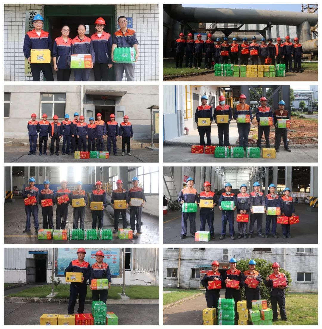 公司党支部书记、工会主席龚健喜,公司副总经理高峰等高管带领慰问组,先后前往余热车间、煅烧车间、综合车间、检修车间、成型车间、天车车间、焙烧车间、项目工地、质量管理科等一线场所,为坚守岗位的工作人员送上了王老吉、雪碧、冰红茶、绿茶等防暑降温物资。每到一处,慰问组都叮嘱大家注意防暑,在高温作业时注意劳逸结合,合理安排休息时间,做好自我防护,确保安全健康。