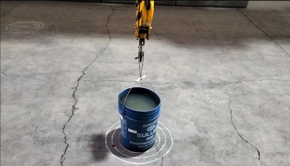 吊水桶项目分0、A、B、C一共4个圆,从0#圆开始鸣笛后出发,离地面高于0.5米运行,依次经过并在规定时间内将水桶放入ABC圆。压圈扣分、水外溢扣分、超时扣分、违反操作原则扣分……要想拿高分,比的是技能水平、战的是心理素质。