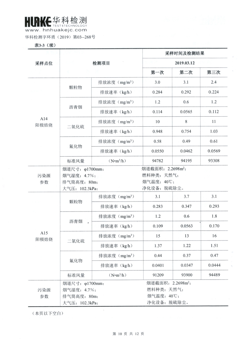 2019年第一季度检测报告